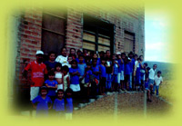 Alunos da 1ª série, professora Penha visitam e entrevistam moradores da Rua Sol Poente, Setor Rio Vermelho |