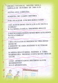 Nós, da Escola Estadual “Mestre Nhola”, estamos agradecendo por tudo que a senhora está fazendo por esses internos. Tudo que a senhora está fazendo vai ser benefício para sua vida espiritual junto a Deus. A senhora seja feliz e viva bem. E que Deus ilumine também todas as pessoas que ajudam essa entidade. (Alunos da 4ª série B)