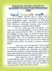 Reconstrução de uma nova história da área circunvizinha da escola, somando conhecimentos já adquiridos pelos participantes, bem como trazendo à tona fatos escondidos nos becos, ruas, muros e na própria vida dos moradores desta cidade.