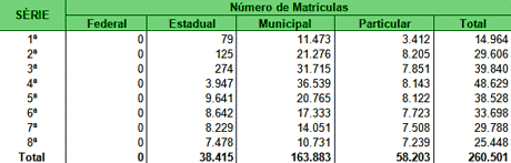 MATRÍCULAS POR SÉRIE NO ENSINO FUNDAMENTAL DE 8 ANOS - 2006
